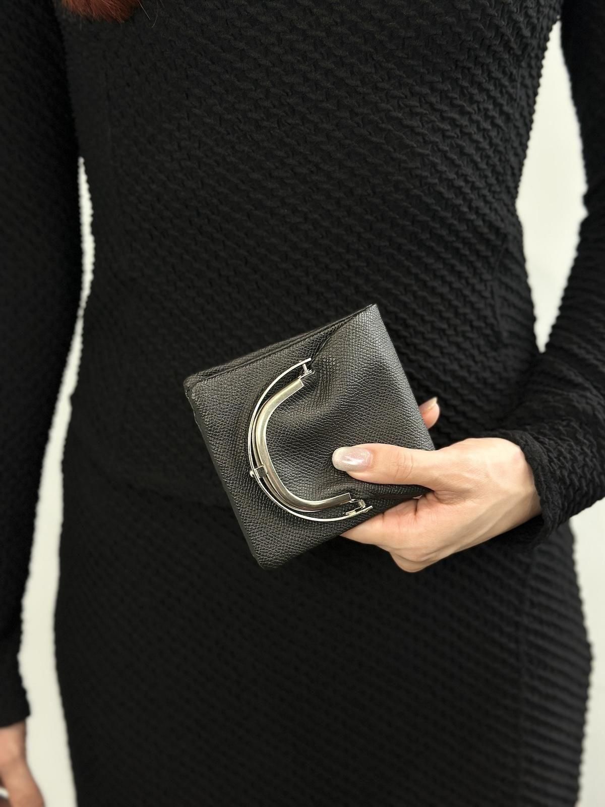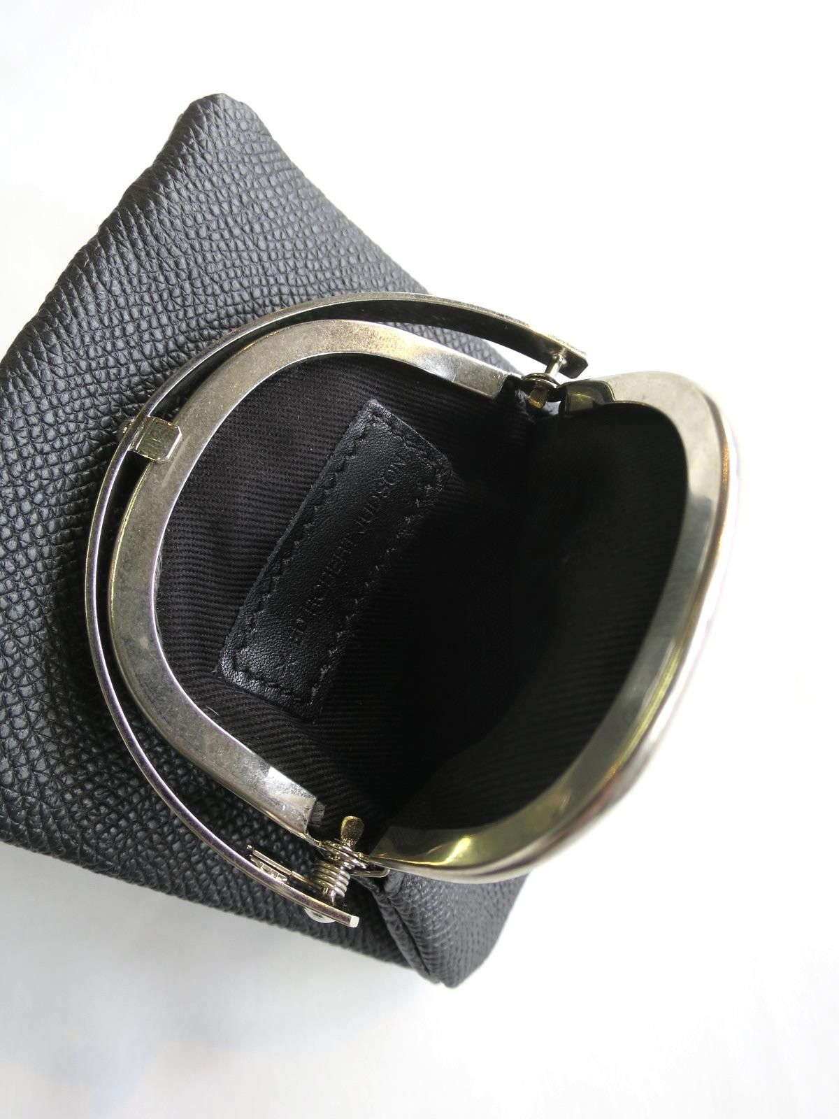 がま口のサイドの部分を押し込むことにより開閉し、小銭も見やすい設計。