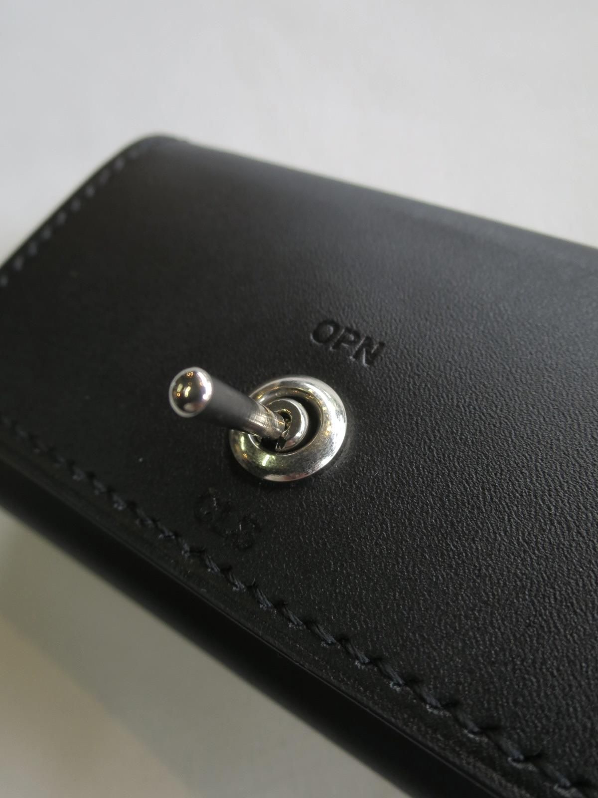 【micro grain】というカウレザーを使用。工業製品のようなソリッドな印象を持ち、見た目では分からない細かなシボによって傷やシワの付きにくい新しいレザーとなります。