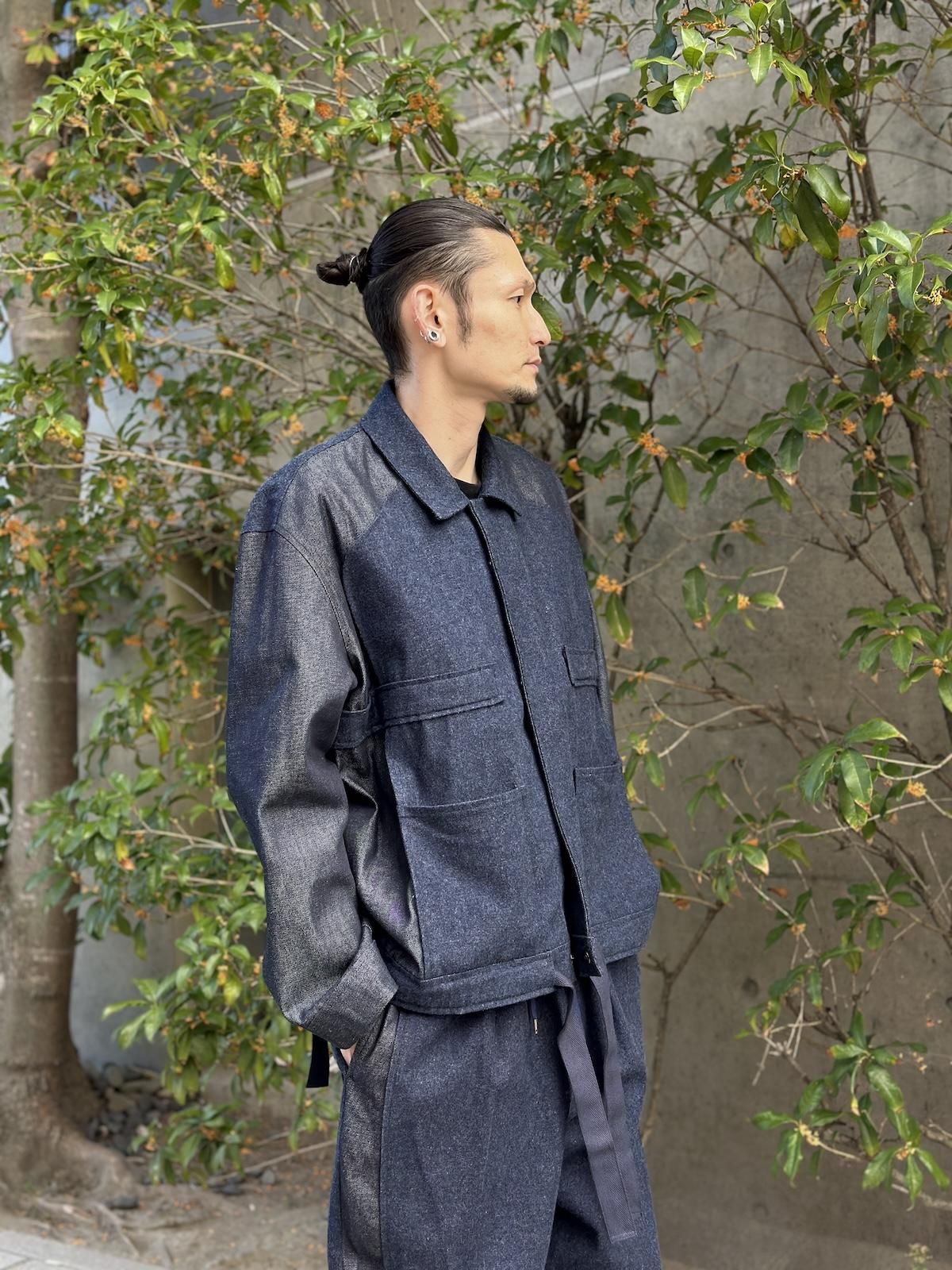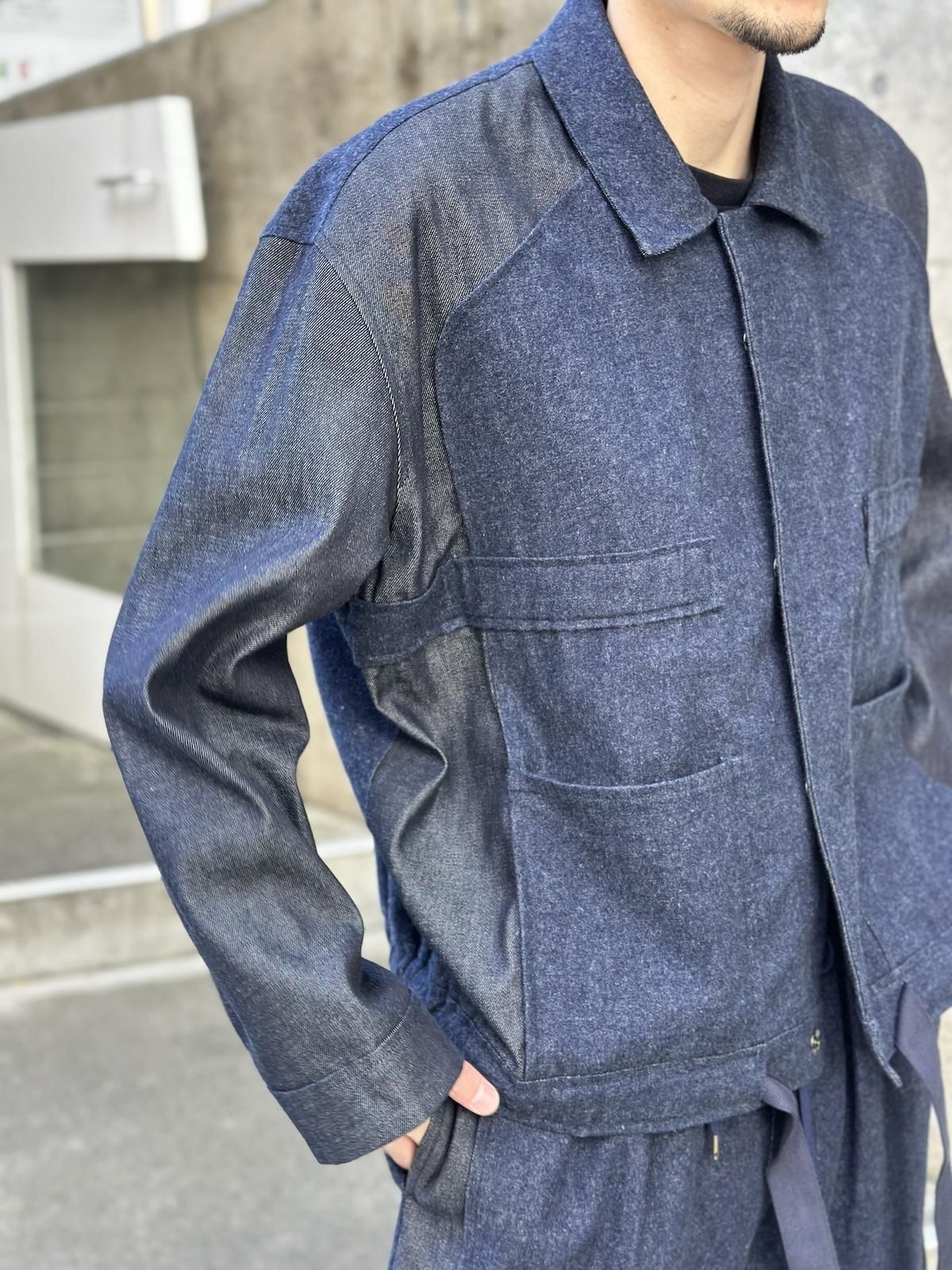 2種類のデニムを曲線的に切り替えたジャケットです。