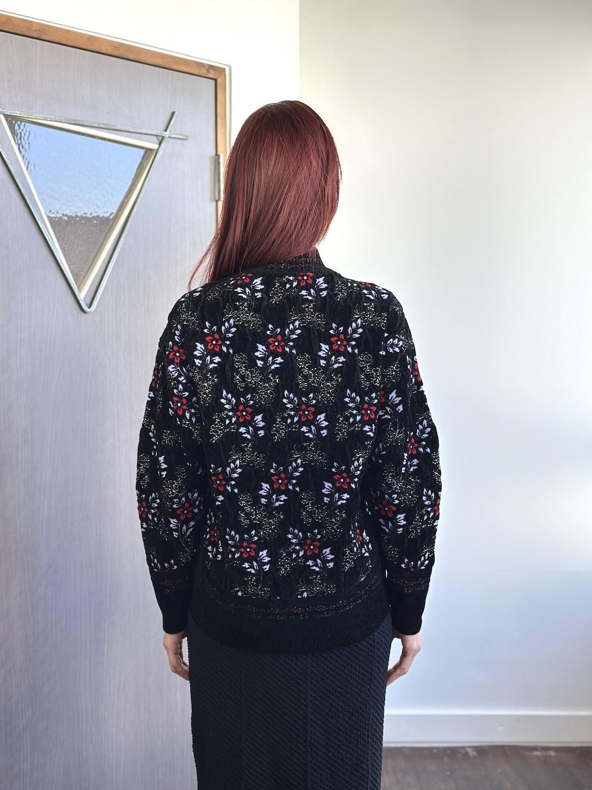 鮮やかな配色が目を惹くキルティング風ニットトップです。