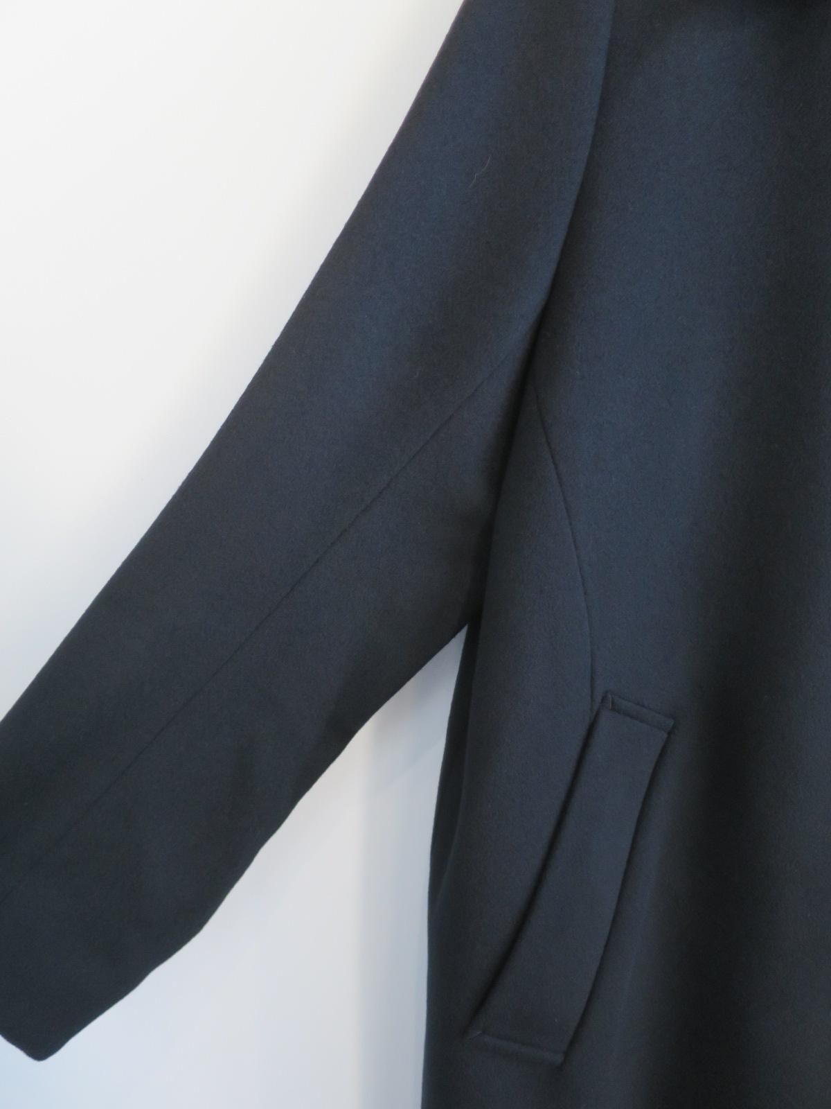 ブランドのシグネチャーであるコード刺繍襟のウールメルトンコートです。